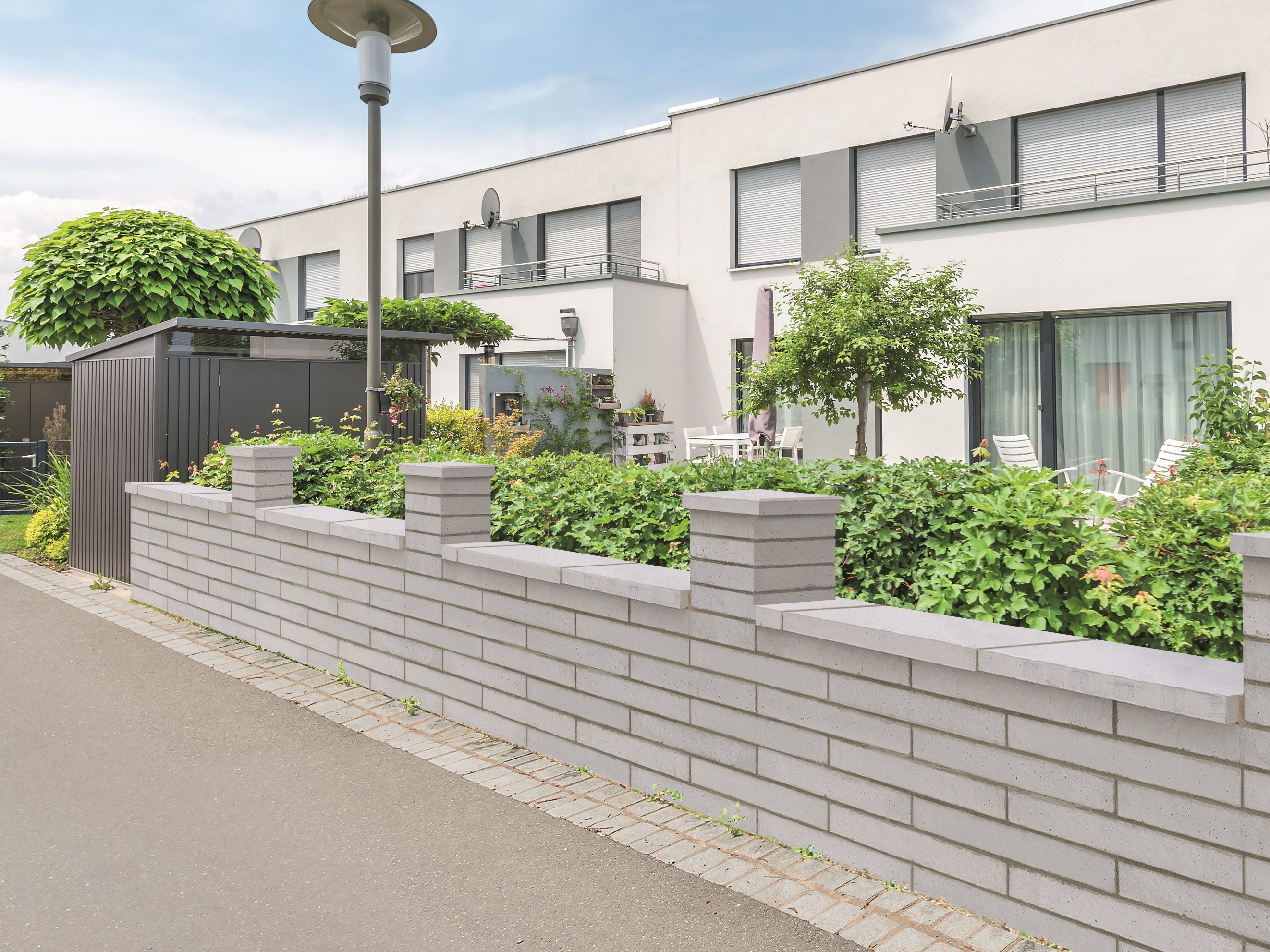 Legyen a kerítés az első jó benyomás! A Semmelrock széles szín- és stílusválasztékából biztosan megtalálja majd az Ön otthonához illőt. Időtálló kerítésrendszereink privát szférát teremtenek, és használhatóak házhoz vezető utak, lépcsők oldalsó rögzítésére, és falazott grill-, illetve ülőhelyek építésére is.